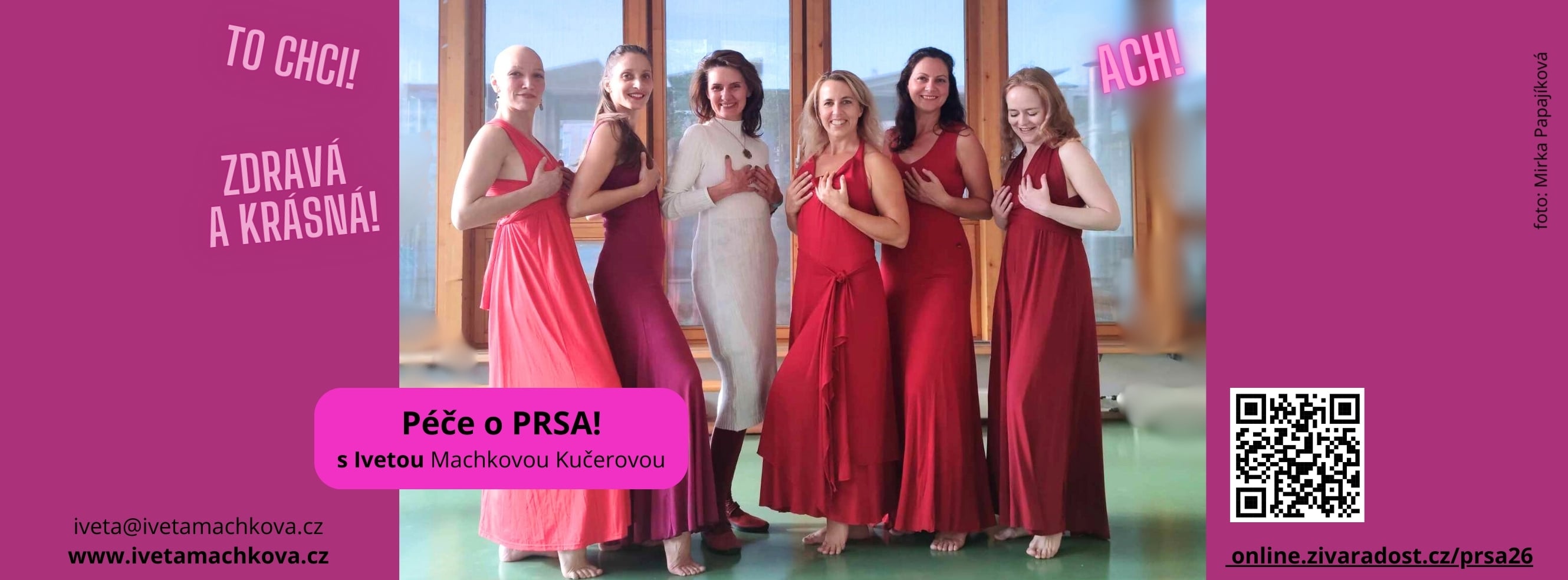 Naučím Tě, jak přijímat svá prsa (je jedno jakou mají velikost) a celé tělo. Mít se víc ráda. Seznámím Tě z ženami, které přijaly své tělo i po operaci či odnětí prsu, takové jaké je.